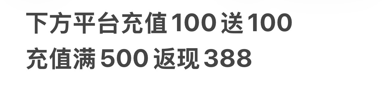 充值100送100 充值500反388(十天内充值达标即可返现)